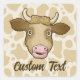 Surprised Cow's head illustration. Seamless cow background pattern. Custom text.