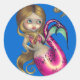 "Surprised Mermaid" is the title - she is TOO cute. This painting makes me giggle a bit. A beautiful blonde mermaid with a stunning pink spotted tail and big blue eyes - swimming in an azure sea - but wait - what's this? Mysterious tentacles can be seen encroaching on the corner of the painting - giving her quite a surprise! My own original acrylic painting!