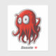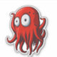 A whimsical, cartoon red squid caught in a moment of sheer surprise. Its vibrant red body instantly captures attention, while its large, round eyes widen with astonishment, accentuated by raised eyebrows that further emphasise its startled expression.