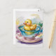AI generated surreal adorable fantasy art of yellow duckling swimming in a pond inside of a teacup