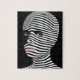 AI generated art of a surreal face with black and white stripes and natural colour lips