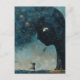 A girl looks up in amazement at the blue tree with a human face surreal fantasy AI art