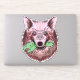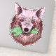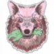 Bold wolf illustration with surreal flair—pink and red fur, piercing mismatched eyes, and a macabre twist as it clenches a zombie hand. A vivid, symbolic design perfect for fans of dark fantasy art and statement merch