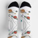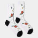 Walk amongst the stars with these uniquely artistic and surreal novelty socks. The eye-catching design features a continuous line-art illustration of a leg and foot floating through a colourful cosmos. Surrounding the leg are vibrant, cartoon-style planets, including Earth and Saturn, and twinkling stars. Set on a crisp white sock with black accents at the toe and heel, this design is perfect for those who love space, art, and fashion that's truly out of this world.