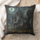 Surreal Creepy Haunted House with Pumpkins & Moon Cushion