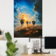 This breathtaking surrealist painting depicts a line of towering elephants adorned with intricate structures, walking through a dreamlike landscape bathed in vibrant golden and blue skies. The fantastical scenery blends reality with imagination, creating a scene of mystery and wonder. The bold, surreal elements make this artwork a captivating centerpiece for any room, evoking thoughts of exploration and the unknown. Perfect for art lovers who appreciate the surreal and fantastical, this piece is available in various formats to fit your space.