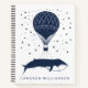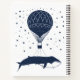 This dreamy notebook design features a whimsical dark blue hot air balloon floating above a majestic whale, surrounded by scattered stars. The scene evokes wonder, imagination, and curiosity—perfect for students, writers, or anyone inspired by the skies and seas. Personalised with a name, it’s a unique choice for journalling, note-taking, or creative thinking.