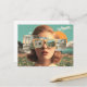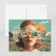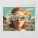Surreal female portrait with retro sunglasses postcard