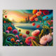 Surreal Floral Landscape: Abstract River and Tower Poster