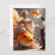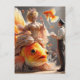 Funny AI generated art of a woman arriving to a party on a goldfish and the doorman is checking to see if she is on the guest list