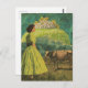 Surreal Lime Desert Dairy Pasture Woman and Cow Postcard