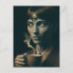 A woman with a third eye enjoys a morning coffee surreal glitch fantasy art