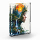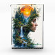 A surreal and ethereal artwork featuring a woman’s profile seamlessly blended with a lush natural landscape at sunset. Dense green forests, cascading waterfalls, turquoise water, and a glowing orange sun create a tranquil yet powerful fantasy scene. The harmonious contrast between warm sunset tones and cool blues evokes calm, imagination, and inner reflection. Perfect for wall art, posters, canvas prints, and home décor for lovers of surreal, dreamlike, and nature-inspired art.