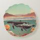 Surreal Ocean Scene With Whales And Coral Round Cushion