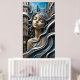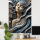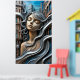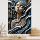 A surreal composite artwork featuring a woman's profile crafted from layered paper textures, flowing hair, and a stylized city skyline. Evokes imagination, urban dream, and contemporary sculpture in a luminous palette.