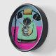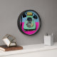 The size of the clock is dramatic and the abstract alcohol ink design is soothing and intricate at the same time. I chose the black frame that adds pop to the blue and gold design. The gold printing would be better in a slightly darker or larger font. I love it and I’m looking for just the right place in ny new apartment. I would recommend this clock for a personal gift or a present. I feel that the quality is excellent for the money! I’m a bit of a clock nut so I’m pretty particular about my purchases. The clock is larger in diameter than many if the clocks I have, so it stands out very well. I think a slightly darker printing color and a moderately larger size would best suit a professional decor or add more impact in a work place item.