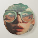Surreal Portrait With Glasses Reflecting Desert Round Cushion
