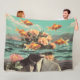 Surreal Portrait With Goldfish Flowers And Ocean Fleece Blanket