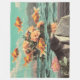 Surreal collage featuring goldfish, flowers, and a headless figure in a suit. Several goldfish swim in the sky above a body of water. A bouquet of peach-colored roses floats on the water's surface. In the foreground, a headless figure wears a gray suit and tie, with a pink lotus flower positioned near the shoulder.