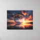A reflective sphere mirrors the vast cosmos against a dramatic sunset. The scene blends celestial and terrestrial elements in harmony.