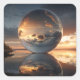 Surreal Reflective Sphere With Sunset Clouds Over Square Sticker
