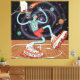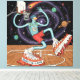 Elevate your wall decor with this Surreal Space Dunk stretched canvas print. Featuring a cosmic basketball player soaring through a galactic court with flaming sneakers and planetary vibes, this artwork fuses sports, sci-fi, and surrealism in bold, vivid detail. Printed on premium canvas, it's perfect for game rooms, teen bedrooms, man caves, or modern spaces craving energy and imagination. A standout gift for basketball lovers and fans of unique art.