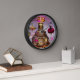 I received this as a birthday gift from my husband to replace a clock that had broken. It was perfect, pictures of my sweet family to see at every hour of the day. The size of the pictures looks nice for the size of the clock and I love looking at it! The only downside is there is no cover for the battery on the back, which makes me nervous having little kids running around the house, but an easy fix with some tape. The printing turned out clear, considering they were all cell phone pictures. Some of them look slightly grainy upon getting close up. But so nice overall!