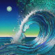 Immerse yourself in the surreal beauty of this seascape painting, where the sun bids farewell in a breath-taking blend of opal, jade, and iridescent colours.