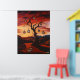 Surreal Tree with Clocks at Sunset – Surrealist Poster