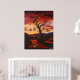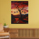 This striking surrealist painting features a barren tree with clocks hanging from its branches, set against a vivid sunset sky. The landscape evokes feelings of timelessness and contemplation, blending reality and imagination in a dreamlike scene. The bold, otherworldly colours and intricate details make this artwork a captivating piece for lovers of surrealist decor. Perfect for adding a thought-provoking and imaginative touch to any room, this artwork is available in multiple sizes and formats to fit your space.