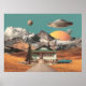 Surreal UFO Over Rustic House Poster