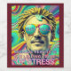 Multi-colored wine labels with the text "SURREAL" reflected in the sunglasses. The text " BECAUSE REALITY IS THE LEADING CAUSE OF STRESS" is written at the bottom. This vibrant, colorful art is reminiscent of the psychedelic seventies.