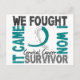 Cervical Cancer came. The two of you fought. You won. Share the sweet taste of victory with everyone around you while giving hope to those still fighting with our It Came We Fought I Won t-shirts, apparel, gifts, and merchandise featuring grunge text, a bold attention-grabbing layout, and teal and white Cervical Cancer awareness ribbon. This empowering Cervical Cancer survivor design makes an ideal gift for the new Cervical Cancer survivor or a survivor’s anniversary.