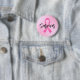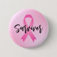 Breast cancer "Survivor" button features custom modern black script lettering with symbolic pink ribbon and pink gradient background.