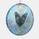This kitten didn't like her first trip to the vet! She was a rescue and was happy to have a home but adjusting to any new life can have its tough times. She's a survivor! Swirly, wavy blue -hued ornament for the holidays or any time of year for that cat-lover on your list. Add your name(s), date to the back if you like.
