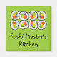Cute and colourful magnet for the sushi master of the household, featuring a picture of brightly coloured sushi and the words, Sushi Master's Kitchen. The text and background colour can be easily changed by clicking on the customise button. Visit the store for matching cards and gifts in this sushi range.