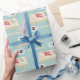 Sushi on a Board Pattern Light Blue Wrapping Paper