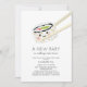 This cute and kawaii "a new baby is rolling into town" gender-neutral virtual/zoom/online baby shower invitation features a sushi roll with a pair chopsticks in watercolor on a white background. The reverse side features a white background with grey wave patterns. Change the background colour on both front and the back and personalise it for your needs.