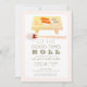 This stylish and modern " Let the good times roll" new year's eve party invitation features watercolored sushi on wood board with chopsticks on white background framed by a blush pink border.  The reverse side features diagnol stripes in blush pink and faux gold. Change the background colour on both front and the back and personalise it for your needs.