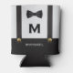 Be a distinguished gentleman with this cool monogram card can cooler for men. Designed with formal suspenders and a fancy bowtie, this keepsake is perfect for formal or wedding related occasions. It's a great option for a groom and his groomsmen. Personalize it with his name and initial for a luxury gift that will be one to remember.