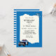 Blue and White retirement invitation for a police officer. Design has a SUV police car and hand cuffs.Use our easy template to customise with your party details.
