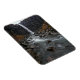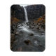 Vertical souvenir magnet with the water of Svartifoss waterfall falling over the black basalt rocks into the wild river in Skaftafell National Park in Iceland in autumn.