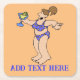 Comical beach, pool, swimsuit woman, add, edit text to personalise.