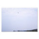 A photograph of a hawk flying high in the summer sky. A small section of the bottom frame is the rugged landscape.