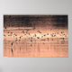 Swallows fly at sunset on a pond, they hunt insects close to the water. Wrap your interior with this poster in the colors of the sunset.