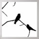 A Black and White Silhouette design of two Swallow birds on a branch. One of the swallows is looking up at the other.