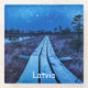 Panoramic view of bog at night with wooden path, small ponds and pine trees. Hiking trail with wooden walkway that goes across the swamp against full moon and night sky with stars