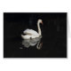 A photo of a white swan gliding over the dark tranquil water. Taken at Roath Park Lake, Cardiff, Wales.
