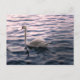 A White Swan floating gently across the water at sunset. Swan photographed in Kefallonia, Greece.