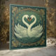 Swan Couple Art Nouveau Forest Green Wall Accent Tile